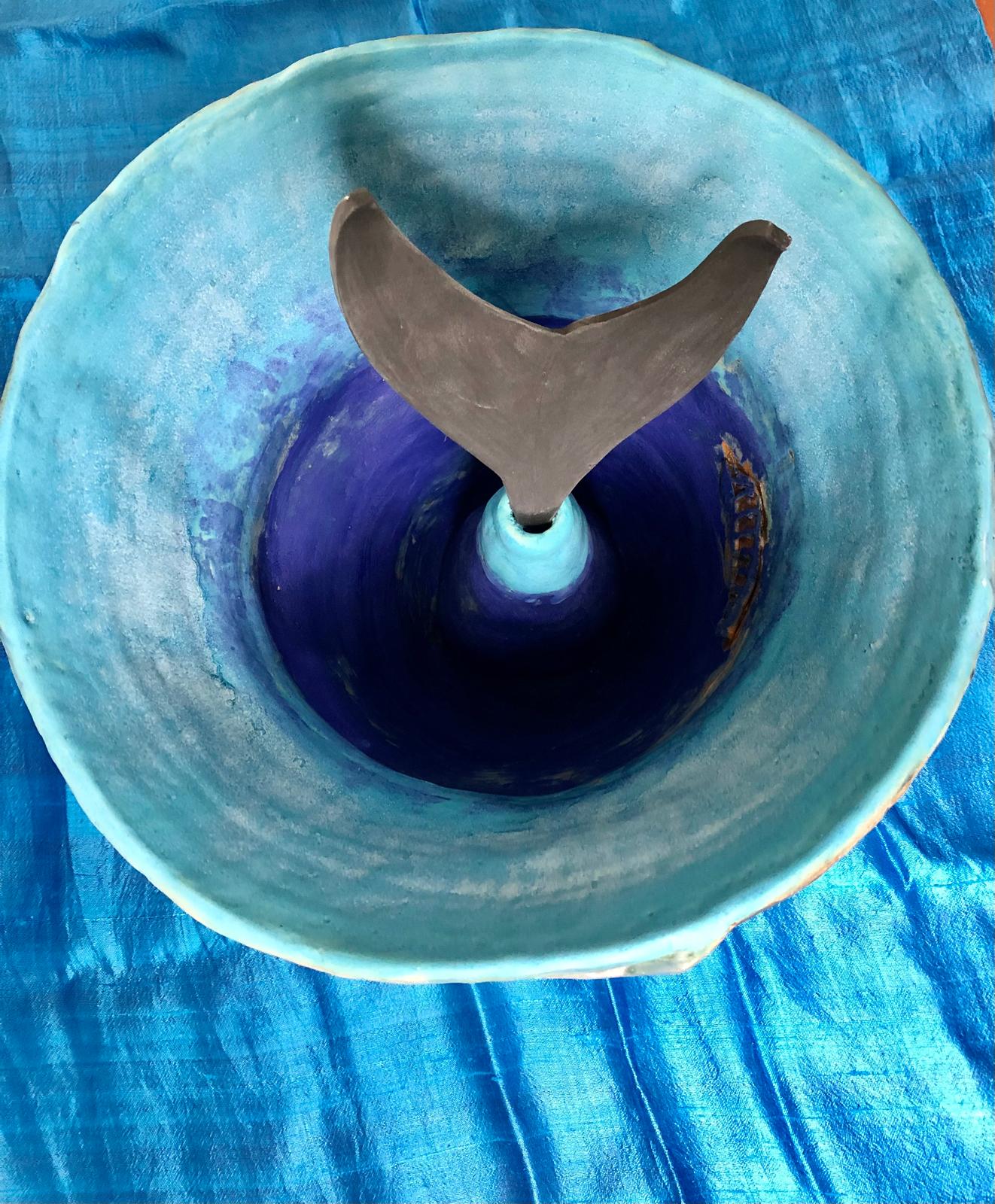 Kaikoura Pot 1 with Whale Fluke and Sea Glass
